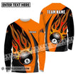 Unisex Shirt - Custom Name And Team Sport Orange Billiard Long Sleeve / S T-Shirt
