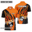 Unisex Shirt - Custom Name And Team Sport Orange Billiard Zipper Polo / S T-Shirt