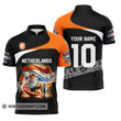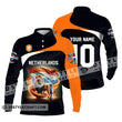 Unisex Shirt Custom Name And Number Football T-Shirt Euro 2024 Netherlands Polo Long Sleeve Zipper